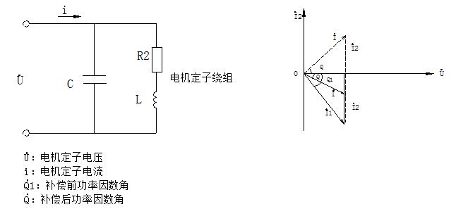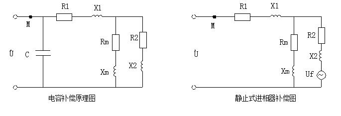 電容補(bǔ)償和進(jìn)相器補(bǔ)償?shù)脑韴D分別如下: